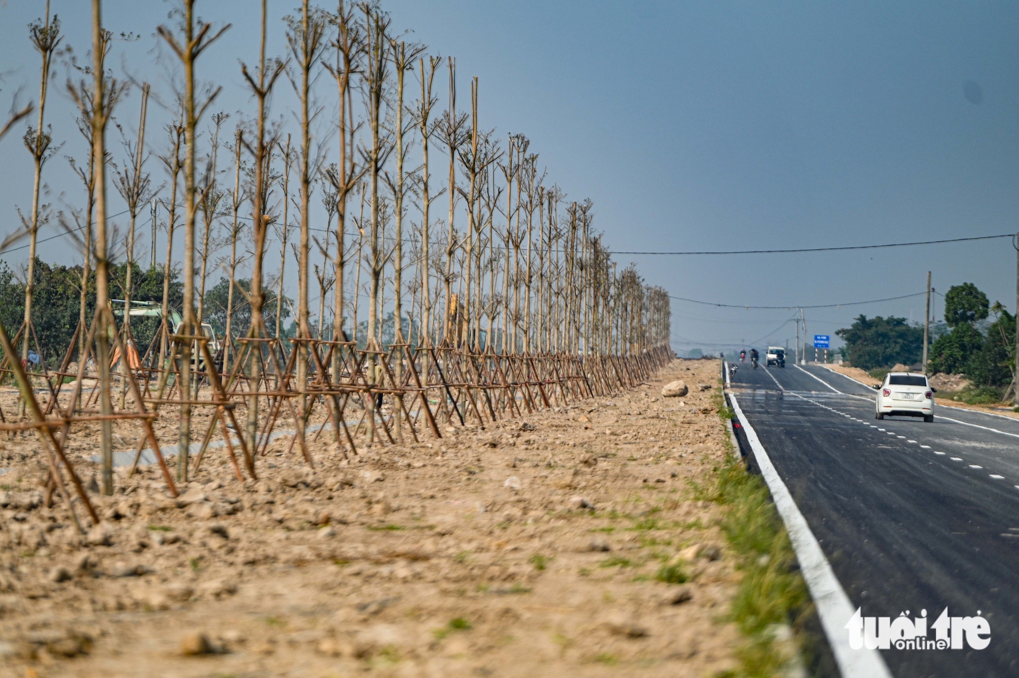 Cây xanh được trồng ở dải phân cách giữa, ngoài ra một nửa phần đường đã cho xe cộ lưu thông tạm