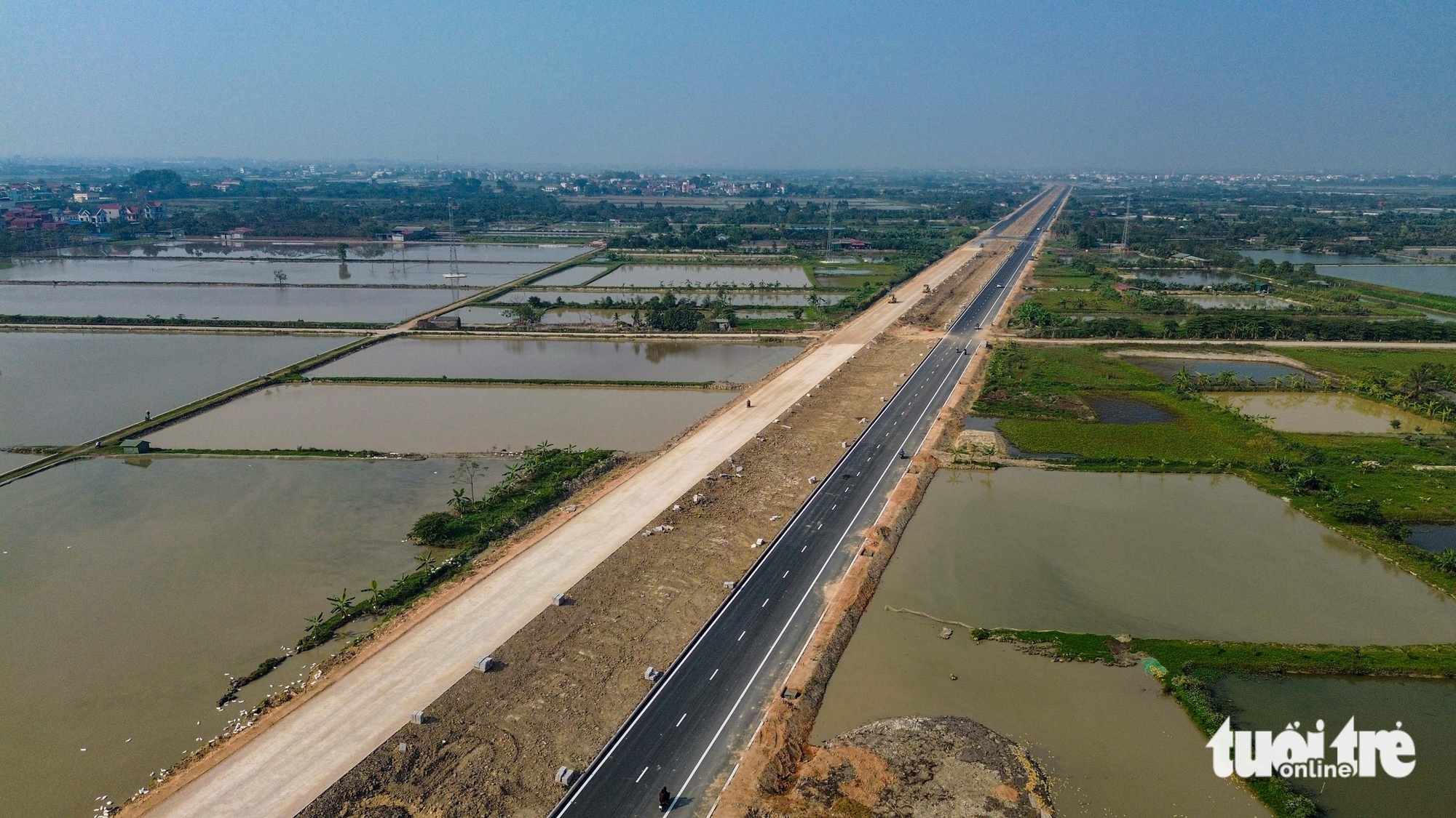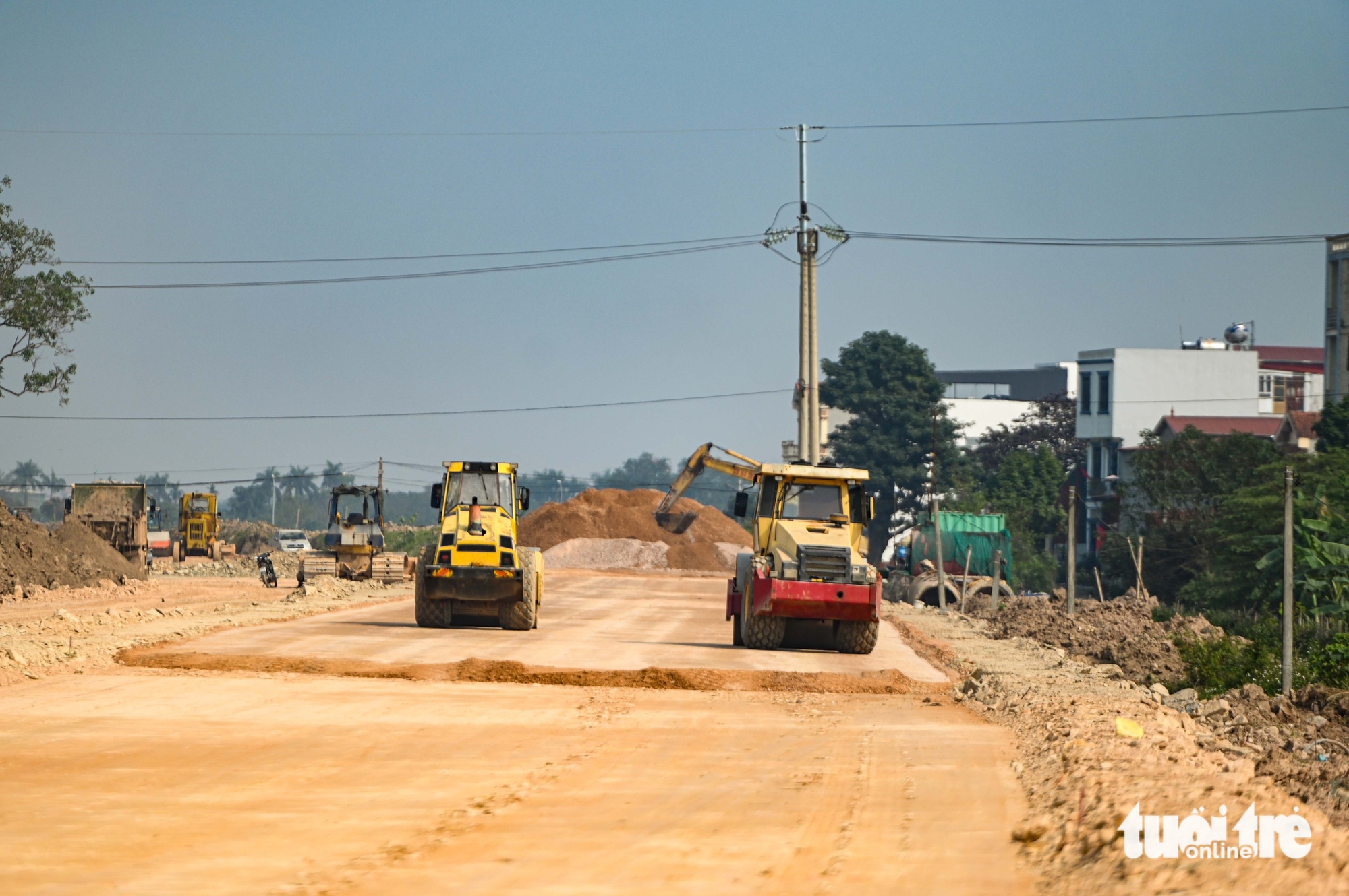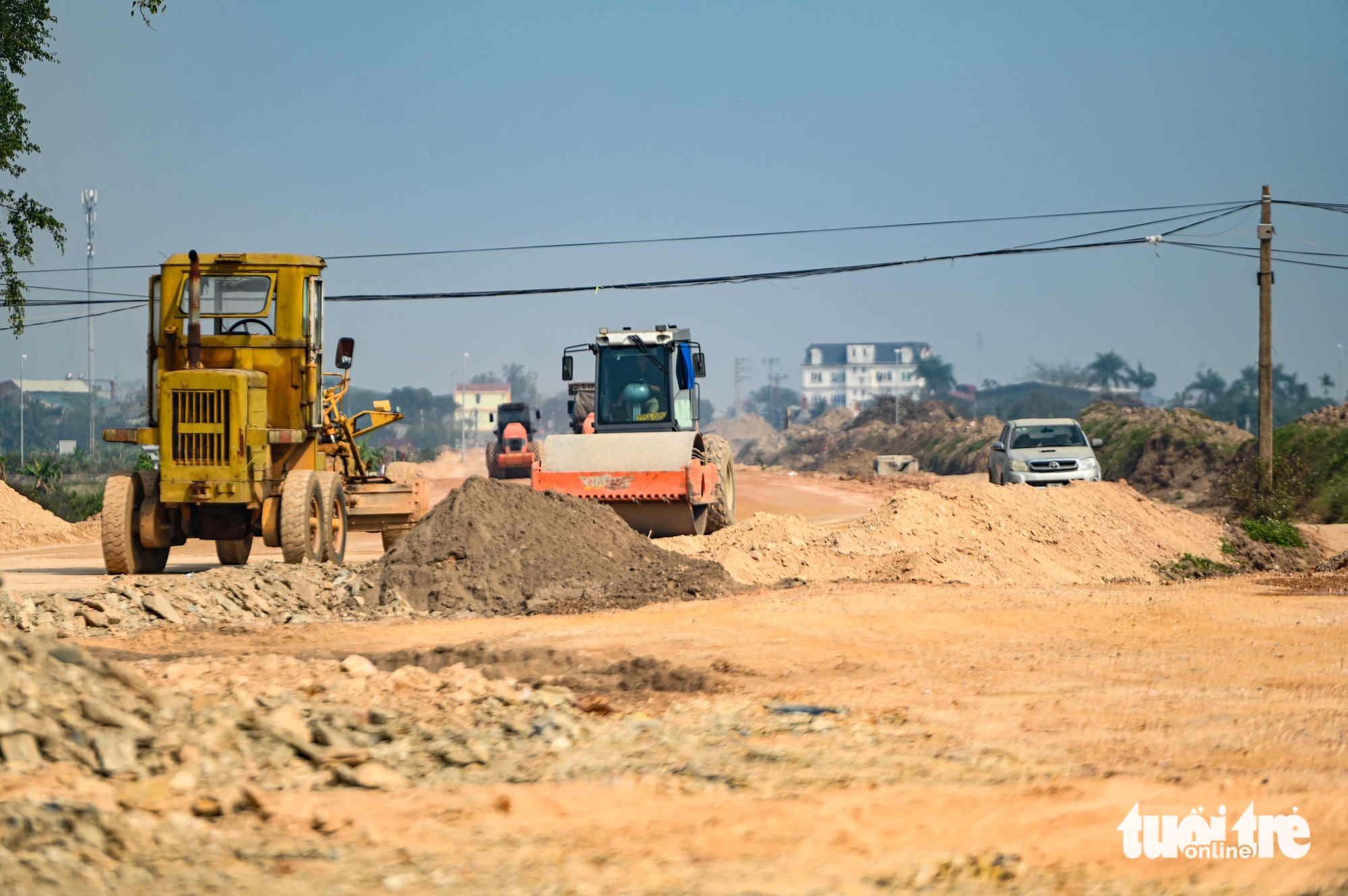 Trong khi đó, khoảng 15km còn lại đang được huy động máy móc thi công đồng loạt. Nhà thầu đang tập trung đắp nền, xử lý nền đất yếu… Hiện mặt bằng đã thông suốt tới quốc lộ 1 đoạn gần nút giao Cầu Giẽ.